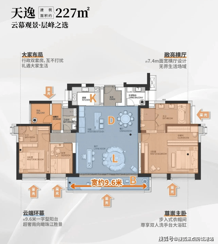 针对高端改善人群,天逸组团和天幕湾组团提供了更为奢华的产品选择。天逸组团主打115㎡至227㎡的多种户型,部分享有江景视野,采用3梯4户设计,且为现房销售。即买即住的优势,让购房者无需等待,立刻就能享受到高品质的生活。其中,141㎡的四房两卫户型,配备了双阳台,主卧套房带衣帽间,空间阔绰,功能完备,完全满足多人口家庭的需求。而227㎡的大户型,则在舒适度上进行了极致的升级,宽厅设计、全景落地窗、豪华卫浴配置,每一处都彰显着尊贵与典雅。