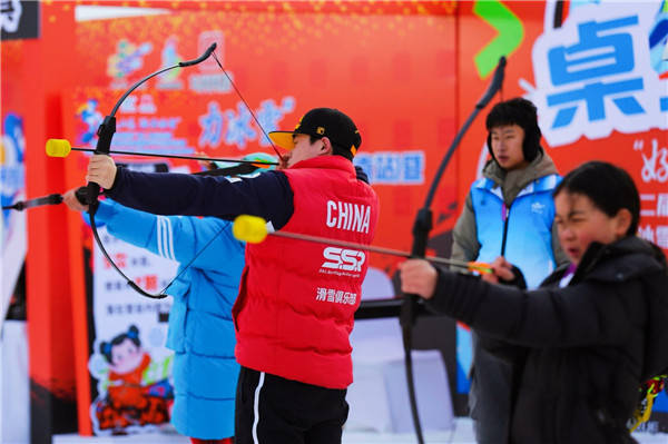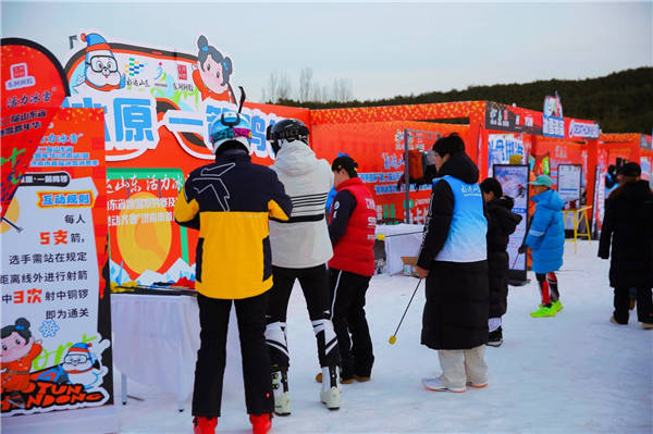 除了紧张刺激的冰雪系列赛,31日16:30至19:00还举办了充满趣味的山东省冰雪嘉年华定向赛。打卡区域分为冰雪文创展示区、冰雪项目体验、冰雪知识问答、冰雪互动游戏、冰雪装备展示五大板块,每个区域都设置了多个互动游戏环节。参与者完成任务后,核验通关即可盖章,集满15枚印章,可获得滑雪针织冷帽及冰雪文创钥匙扣一个;集满20枚印章,可获得滑雪针织冷帽及抽奖机会一次。文创大礼包和抽奖奖品丰富,包括集章册、滑雪针织冷帽、钥匙扣、滑雪飘带、马克杯、防冻贴、保暖面巾、东阿阿胶枣等。 定向赛互动体验项目众多,桌上冰壶、雪地保龄球、速滑训练滑行板、冰球射门训练器、风阻滑雪机、滑雪训练机、雪地冰壶、飞盘掷准等趣味项目等待大家现场解锁,参与者们在各个打卡点之间穿梭,不仅体验到了冰雪运动的乐趣,还学到了不少冰雪知识,现场欢声笑语不断。